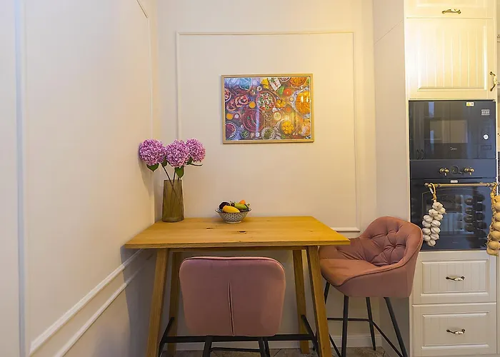 Die Ferienwohnung The Pearl Downtown bietet tolle Selbstversorgereinrichtungen, darunter eine voll ausgestattete Küchenzeile mit einem Wasserkocher, einem Kühlschrank und einem Herd. Die Ferienwohnung The Pearl Downtown ist in ca. 5 Gehminuten Entfernung von der nächstgelegenen Bushaltestelle Tsentralni Hali.